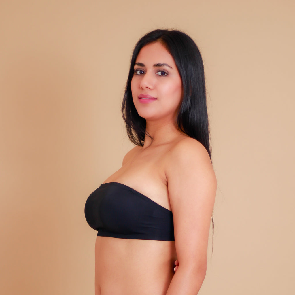 Strapless sin varilla con copas delgadas removibles, cortado láser sin costuras que lo hacen invisible, tejido de poliamida suave y transpirable, con broche sujetador en espalda.